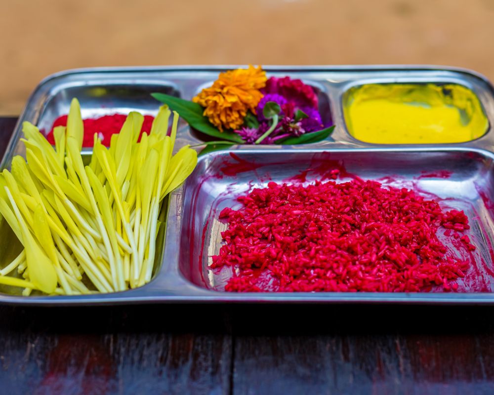 One of the most cherished traditions of Dashain is the tika ceremony, where elders place red tika and jamara on the foreheads of younger family members, accompanied by blessings and good wishes. Homes are cleaned and decorated, and new clothes are worn to mark the festive spirit. Families come together for grand feasts, sharing traditional dishes like sel roti, meat curries, and seasonal delicacies.