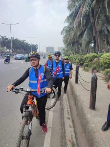 We began our journey from Kathmandu to Sunauli. It took us two days to reach Sunauli, as we were traveling slowly and taking rest along the way. During the journey inside Nepal, people offered us food and snacks free of cost. Everyone supported us generously. I would like to thank all those who helped us along the way.
