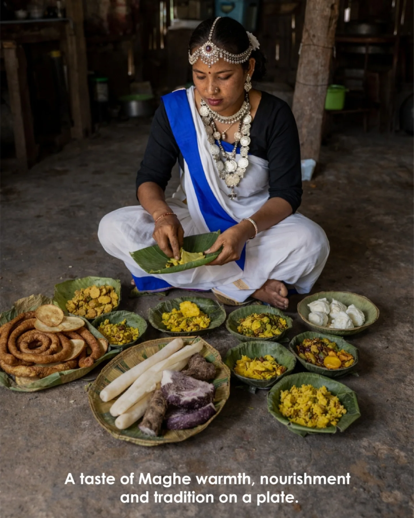 On Magh 1, married daughters receive special gifts called Nisrau, consisting of rice, salt, lentils, cash, and other items. Married daughters are invited to their parental homes, and if they cannot come, family members visit them to deliver Nisrau. This tradition deepens family relationships.